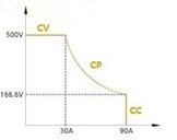 Por ejemplo, el simulador fotovoltaico puede proporcionar una salida de corriente de 30 A a 500 V, una salida de corriente de 90 A a 166,6 V y una salida de potencia máxima de 15 kW a cualquier voltaje entre 166,6 y 500 V. Mientras que la fuente de alimentación tradicional de 500 V/15 kW proporciona una salida de corriente de 30 A a 500 V, esta solo puede proporcionar una salida de corriente de 30 A a 166,6 V, y la potencia se reduce a 5 kW.